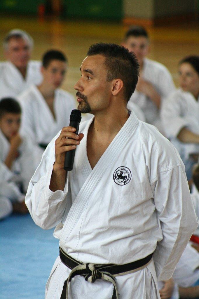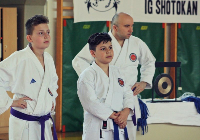 Po uvodnem karate pozdravu smo pričeli s tekmovanjem v elementih in katah, kjer tekmovalci izvajajo sklope točno določenih tehnik. Kako so pri tem uspešni, ocenijo sodniki. Po kratki pavzi, je glavni trener kluba izvedel nastop kate Sochin.