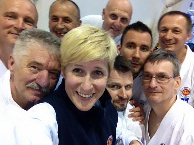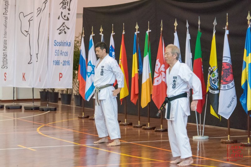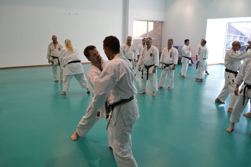 V petek 22.4. pa se je končno začel seminar zaradi katerega smo prišli na Portugalsko. Seminar so vodili eminentni inštruktorji na čelu s Soke Hirokazu Kanazawa, 10.DAN. Soke šteje že 85 let, kar se seveda pozna tudi na njegovi vitalnosti. Pri hoji si pomaga s palico, ko pa se postavi pred množico karateistov, ki vpijajo njegova navodila, pa se spremeni skoraj v mladeniča. Poleg njega so treninge vodili njegova sinova Kancho Nobuaki Kanazawa in sensei Daizo Kanazawa, syuseki shihan Manabu Murakami, shihan Akio Nagai in shihan Rikuta Koga. Vsi udeleženci seminarja smo tri dni z velikim veseljem zavzeto trenirali in z veliko pozornostjo sprejemali informacije vseh teh mojstrov.