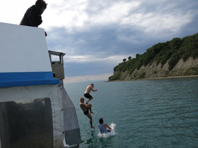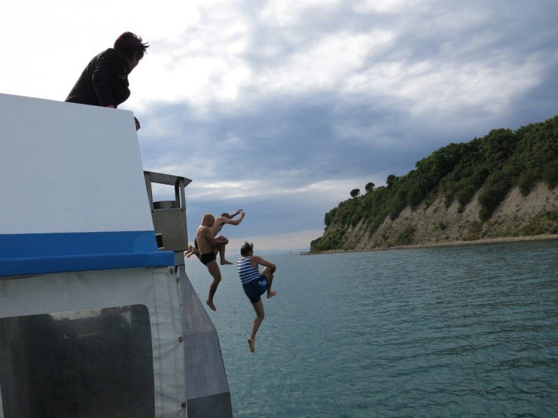 Poletni seminar v Izoli pa ne bi bil tapravi, če ne bi bilo tudi piknika na ladji, kjer je obvezen del skoki z vrha ladje. :)